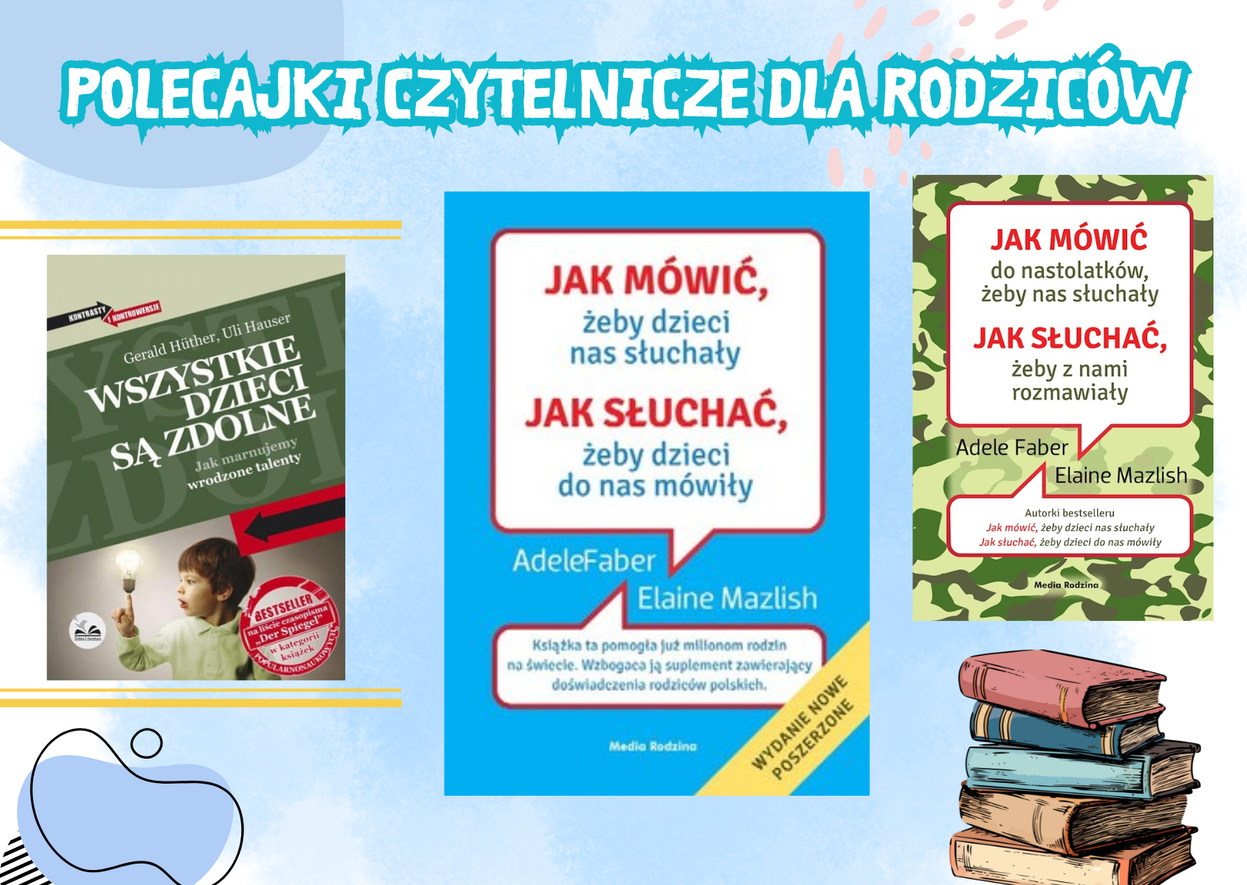 Dla Rodziców Gdzie szukać pomocy Polecajki czytelnicze 1 Polecajki czytelnicze 2 Rutyna daje bezpieczeństwo Zobacz również Godziny pracy Plan pracy Dla Rodziców