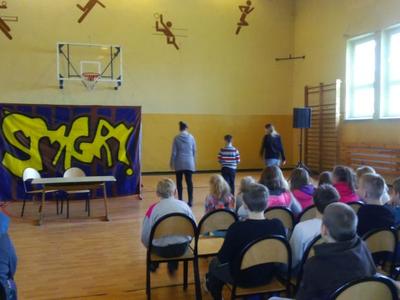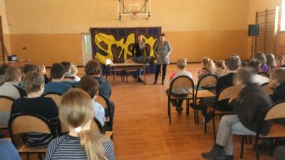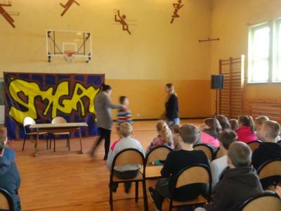 W ramach realziacji programu rządowego Bezpieczna +, w szkole gościł Impresariat Artystyczny Inspiracja z Krakowa, z przedstawieniem dla dzieci z klas 1-3 pt. "Prawdziwy Skarb" oraz dla klas 4-6 "Petla zdarzeń". Uczniowie klas młodszych zostali uświadomieni, jak ważna i cenna jest przyjaźń, dlaczego warto o nią dbać, dlaczego warto być dla siebie nawzajem dobrym i zyczliwym. Klasy czwarte poznały losy bohaterów, którzy zostali ofiarami cyberprzemocy. Poznali konsekwencje niewłaściwych działań w internecie. Po spektaklu uczestniczyli w pogadace, której założeniem było zachęcenie do właściwego korzytania z komputera, telefonu, internetu.
