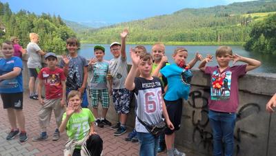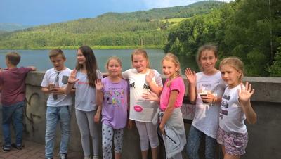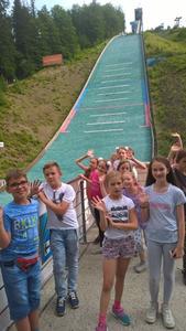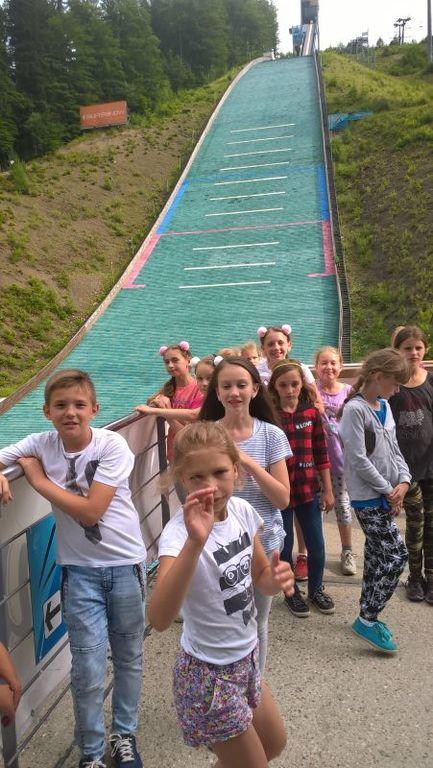 Najpierw wjazd wyciągiem krzesełkowym na Czantorię, potem zjazd saneczkami po torze. Następnie krótka wspinaczka i piękna panorama gór z tarasu widokowego. Kolejny punkt wyprawy-spacer po Wiśle i ... podziwialiśmy: pomnik Adama Małysza z białej czekolady, ozdobne płyty chodnikowe naszych polskich skoczków, pomnik Wisełki. Znaleźliśmy czas na smaczną pizzę i zakup pamiątek na deptaku. Na koniec: skocznia w Wiśle-Malince, spacer po tamie na Białej i Czarnej Wisełce oraz zameczek polskich prezydentów.