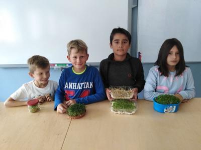 Uczniowie m.in. klasy 4a – Dominik Bystrzycki, Piotr Kulik, Jakub Rabski i Emilia Przystajko demonstrowali już na stołach swoje pierwsze doświadczenia z rzeżuchą wykonane na lekcjach biologii. Wszystkim uczniom i nauczycielom podoba się nowa pracownia, w której przyjemnie się uczy i prowadzi lekcje.