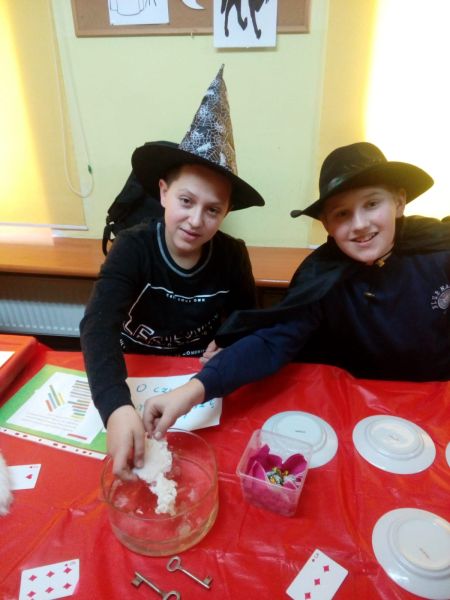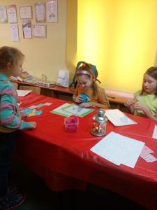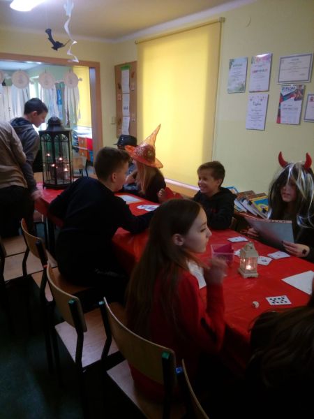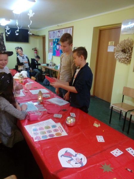 30 listopada nasza świetlica zamieniła się w magiczny salon, w którym zgodnie z tradycją, odbyły się różne wróżby i zabawy. Najpierw opowiedzieliśmy sobie o historii andrzejkowych tradycji. Potem rozpoczęliśmy zabawę z przygotowanymi przez dzieci oraz panie wróżbami. Były talerzyki, buciki, gwiazdy – zawody, horoskop ,kostki szczęścia i oczywiście przekłuwanie serca z imieniem wybranka oraz przepowiednie ukryte w słodkim ciasteczku. Wszystkiemu towarzyszyło dużo śmiechu, bo każdy miał świadomość, że to tylko zabawa.