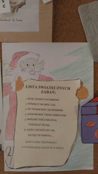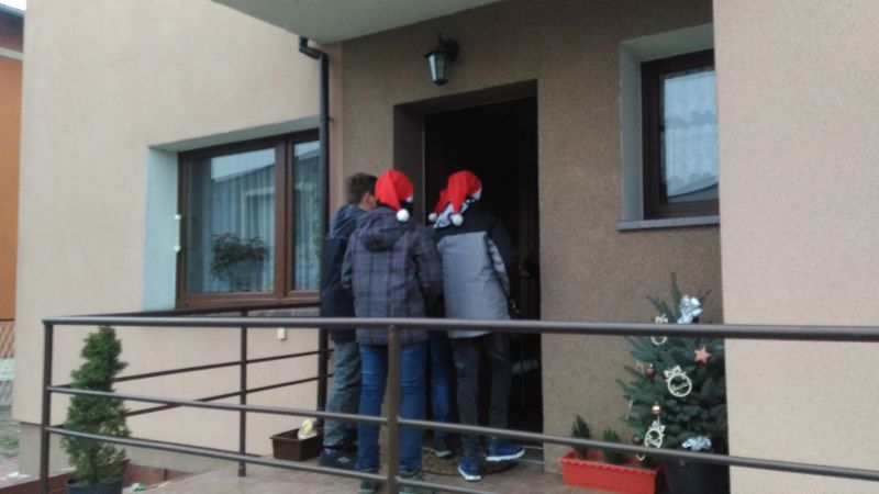 Pani Aleksandra Mrosek wraz z uczniami klasy II wręczyła kartki bożonarodzeniowe rodzicom dzieci naszej szkoły w Molnej. Wolonariusze wraz z opiekunką Barbarą Mrozek zawitali również do emerytów z własnoręcznie przygotowanymi kartkami świątecznymi. Klasa II w Glinicy z wychowawczynią Ewą Mnich odwiedzili okoliczne sklepy i również przekazali świąteczne życzenia.