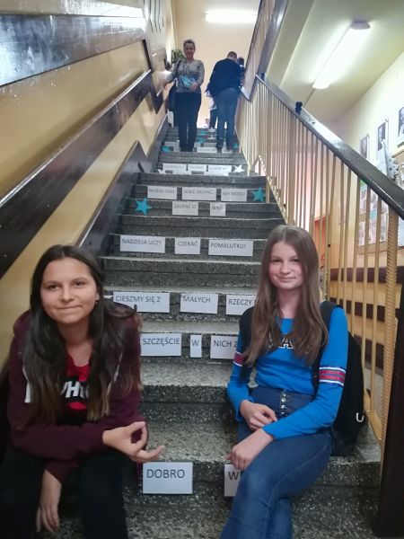 Spójrzcie również na schody. Wdrażajcie w życie sentancje, które są na nich przyklejone: