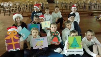 Z kolei uczniowie klasy IV b zaprezentowali krótkie przedstawienie w języku niemieckim o poszukiwaniu ducha Świat Bożego Narodzenia.