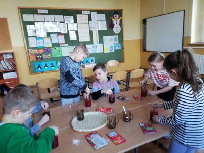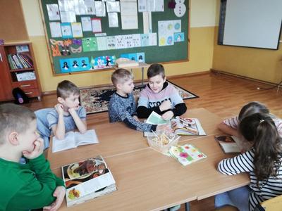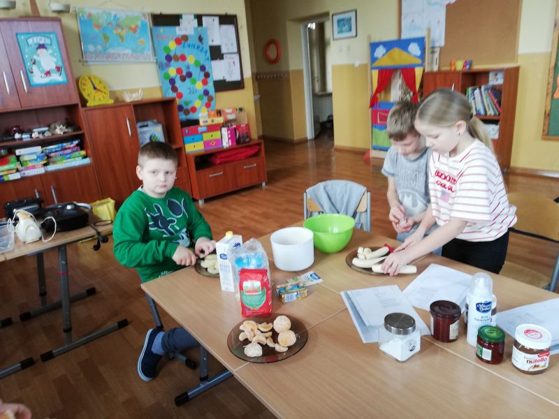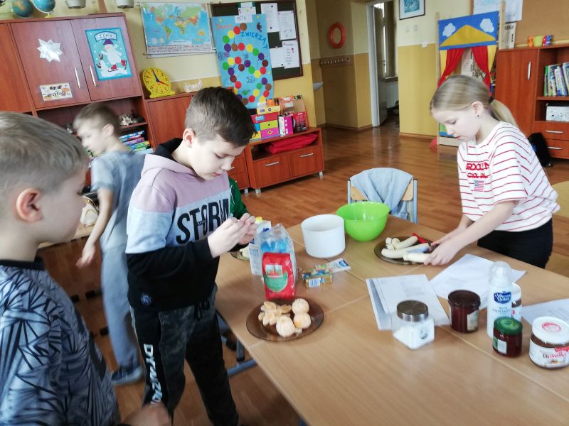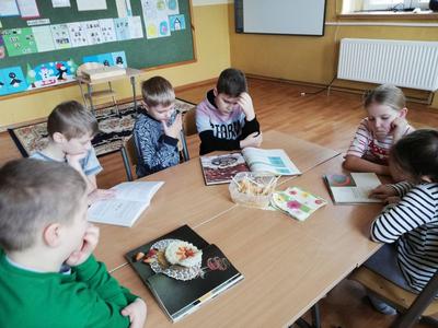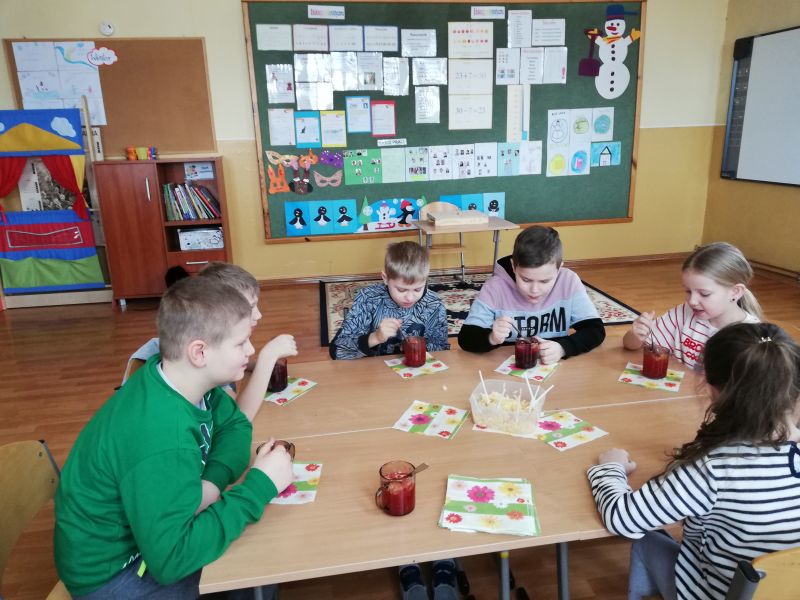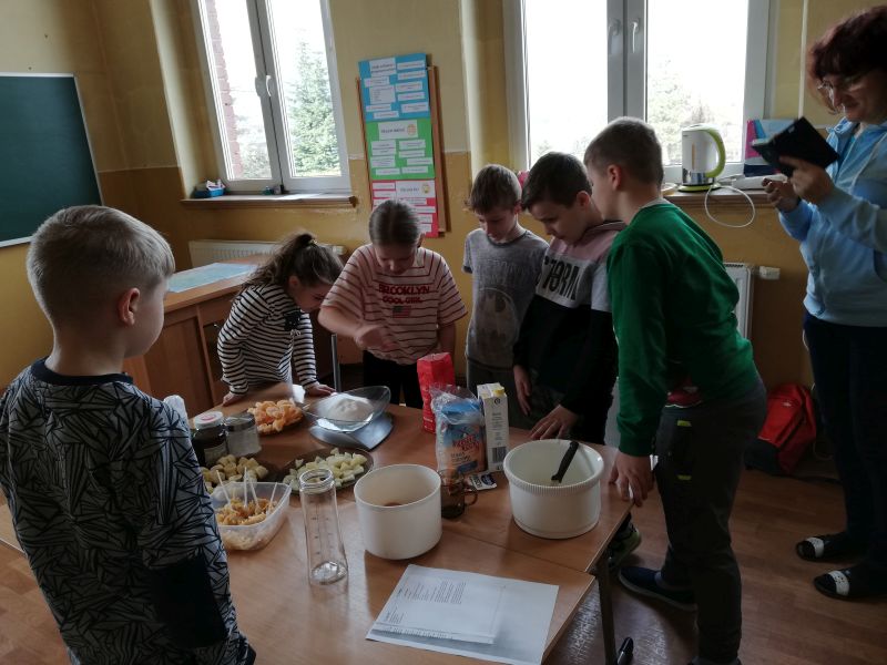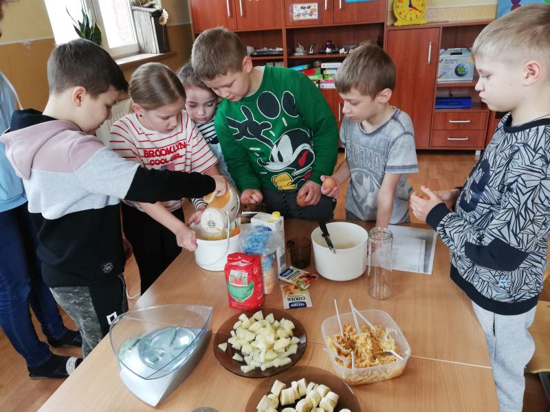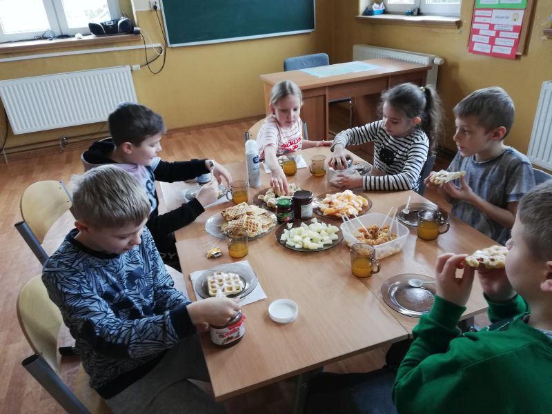 Ferie zimowe to czas wypoczynku oraz wspólnej zabawy. Jest to także okres, w którym poprzez kreatywne zajęcia dzieci mogą dużo się nauczyć. W pierwszy dzień ferii 11 lutego 2019 r. w Szkole Filialnej w Glinicy zorganizowane zostały dla dzieci zajęcia kulinarne połączone z czytaniem książek. Dzieci zapoznały się z różnymi rodzajami książek kucharskich. Czytały przepisy oraz sposoby wykonania ulubionych potraw. Na zajęciach dzieci miały możliwość wykazania się umiejętnościami oraz rozwinąć swoje zainteresowania. Wspólnie z nauczycielem przygotowały wybrane desery. Do wykonania deserów zgodnie z zasadami bezpieczeństwa samodzielnie korzystały z wagi, miksera, tarki oraz gofrownicy. Dzieci z zaangażowaniem przygotowały kisiel z potartym jabłkiem oraz upiekły pyszne gofry. W dalszej części szkolnych ferii pani bibliotekarka czytała z dziećmi książki z wykorzystaniem metody „Papierowego Teatru Kamishibai”. Dzieci nie tylko słuchały czytanych legend i opowiadań, ale czynnie uczestniczyły we wspólnej zabawie. Samodzielnie czytały tekst zapisany na kartkach teatrzyku oraz aktywnie przedstawiały ruchem treść bajki. Zajęcia dostarczyły dzieciom wiele emocji oraz radości.