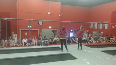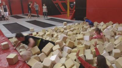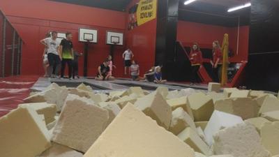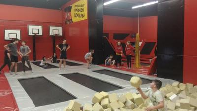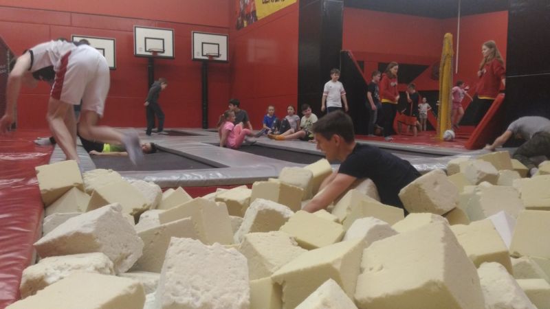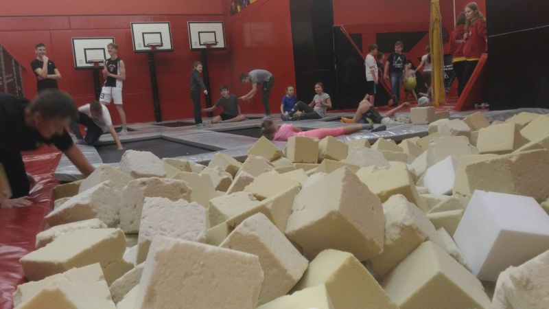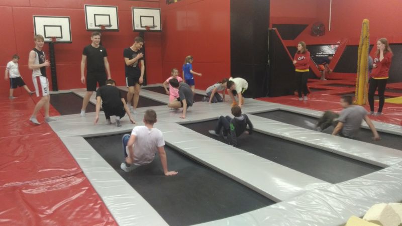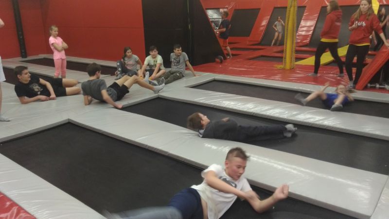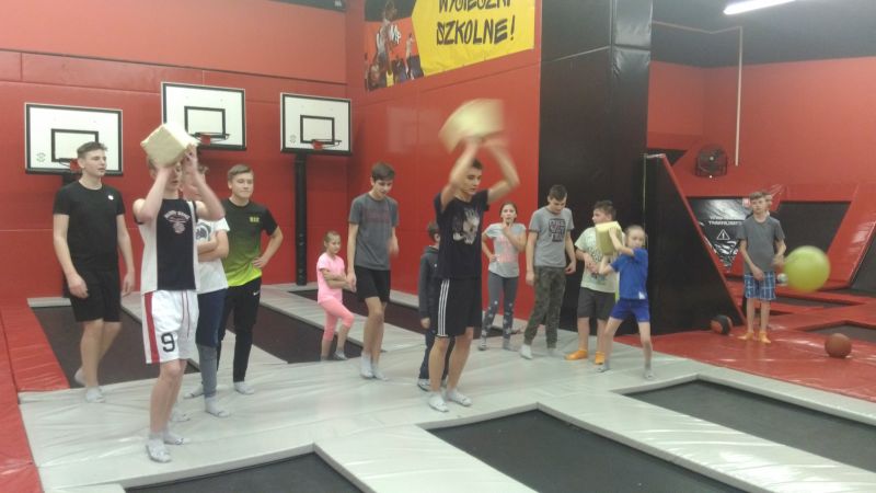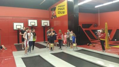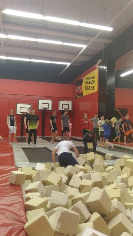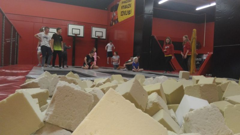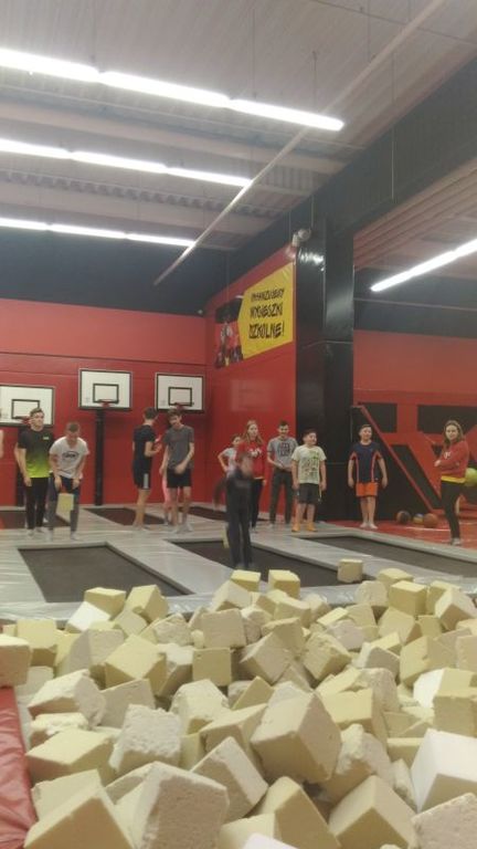 Na zajęcia pojechaliśmy do Zabrza, do jednego z kilku w Polsce Parków Trampolin. Po solidnej rozgrzewce przeprowadzonej przez wykwalifikowanych animatorów uczniowie wzięli udział w wyścigach rzędów. Przekonali się na własnej skórze, że wydostanie się z basenu z gąbkami wymaga ogromnego wysiłku fizycznego.