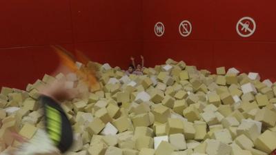 Po zakończonych wyścigach uczniowie mieli czas wolny na własną inwencję twórczą w skakaniu, w saltach, w odbijaniu, we wsadach do kosza i "pływaniu" w basenie z gąbkami.