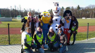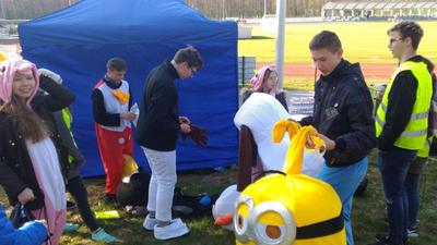 Impreza pana radnego polegała na zorganizowaniu „Lublinieckiego Niebieskiego Biegu”, gdzie wolontariusze ZSP świadczyli na rzecz organizacji kilka czynności. Głównym zadaniem było zabawianie najmłodszych uczestników imprezy w strojach: Bałwana Olafa, Minionka, Myszki Micky oraz różowych jednorożców. Świadczyli także prace organizacyjno – porządkowe w trakcie trwania biegu i po jego zakończeniu oraz rozdawali biegaczom fanty przekazane przez sponsorów imprezy biegowej.