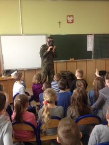 W dniu 29.03.2019 odwiedził naszą szkołę w Molnej zawodowy żołnierz z jednostki wojskowej w Opolu. Podczas godzinnego spotkania można było posłuchać ciekawostek na temat: życia wojskowego, jego obowiązków, sprzętu oraz innych zagadnień związanych z pracą żołnierza.