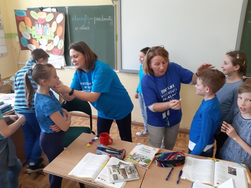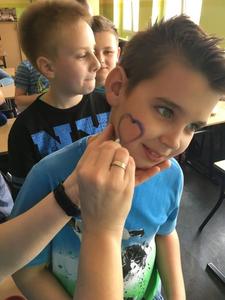 W dniu 3 kwietnia uczniowie i nauczyciele ubrani na niebiesko, z pomalowanymi buźkami obchodziliśmy Dzień Świadomości Autyzmu.