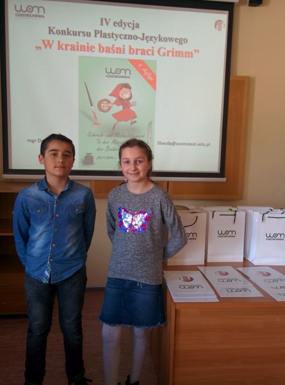 Uczniowie naszej szkoły Hanna Radlak i Jakub Rabski wzięli udział w konkursie: „In der Märchenwelt der Brϋder Grimm” ("W krainie baśni braci Grimm"), zorganizowanym przez Wojewódzki Ośrodek Metodyczny w Częstochowie. Zadaniem konkursowym było stworzenie komiksu w języku niemieckim w formie krótkiej historyjki, opisującej przygody dowolnie wybranego bohatera baśni braci Grimm. Akcja komiksu miała rozgrywać się we współczesnych czasach.