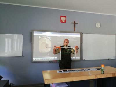 Dnia 11.05.2019 r. odbyło się spotkanie z panem leśnikiem pt. „Spotkanie z naturą”. Uczestnikami zajęć byli chętni uczniowie z klas Va, Vb oraz IVb. Pierwsza część spotkania odbyła się w sali przyrodniczej, a zaproszonym gościem był pracownik Służby Leśnej Lasów Państwowych, podleśniczy Nadleśnictwa Lubliniec – Pan Kamil Łapok. Pan leśnik zaczął spotkanie od przedstawienia prezentacji multimedialnej ukazującej rożne aspekty swojej pracy, wygłosił prelekcję o tym na czym polega praca leśnika, a także przeprowadził pogadankę z uczniami na temat „Czym jest przyroda i las?”.