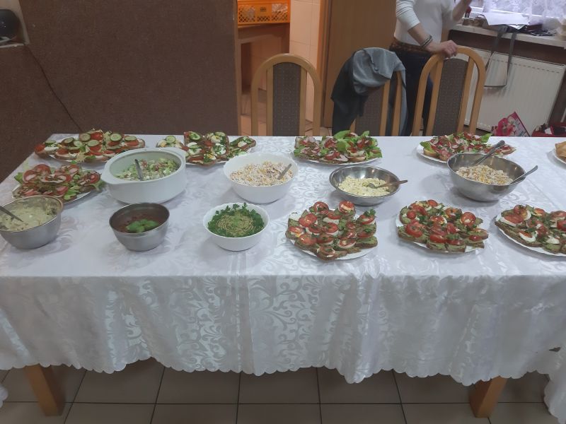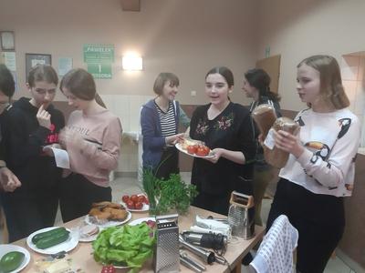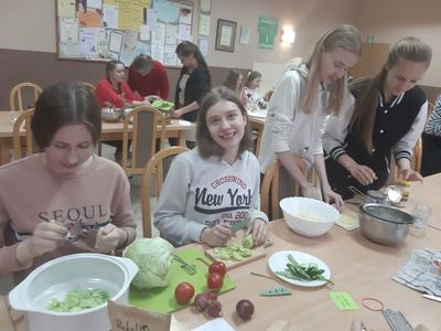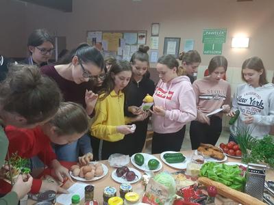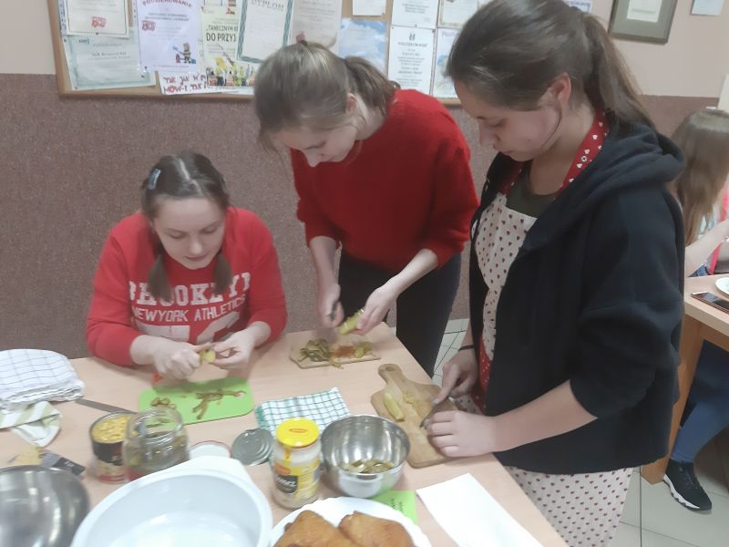 Uczennice zjadły pączka w przerwie, obiad oraz uczestniczyły w ognisku z kiełbaskami. Powodzeniem cieszyły się warsztaty kulinarne, podczas których dziewczyny w grupach robiły kanapki, pasty i sałatki.