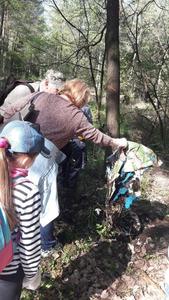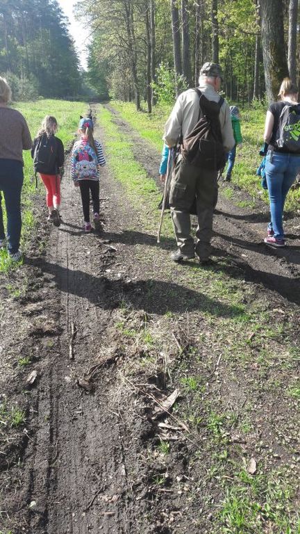 Na zaproszenie szkoły przybył do nas przedstawiciel Koła Łowieckiego Hubertus – Pan Mieczysław Kozina. Na spotkanie z przyrodą pan myśliwy zabrał nas do pobliskiego lasu, gdzie opowiedział jak w sposób świadomy korzystać z ogromnego bogactwa jakim jest otaczająca nas przyroda, jak dostrzegać jej piękno, ale także i czuć się odpowiedzialnym za jej stan. Nasz gość opowiedział o swoich doświadczeniach związanych z myślistwem oraz o różnych gatunkach zwierząt jakie można spotkać w naszych okolicznych lasach. Zobaczyliśmy m. in. kąpielisko dzików, lizawki, a także mogliśmy podążyć tropami zwierząt. Przy tak pięknej pogodzie, maszerując leśnymi ścieżkami z ogromnym zaciekawieniem słuchaliśmy opowiadań pana myśliwego i podziwiając piękno przyrody uprzątnęliśmy wszystkie napotkane śmieci. Naszemu spotkaniu towarzyszyła zarówna miła atmosfera jak i piękna pogoda. Za wspaniałą lekcję przyrody serdecznie dziękujemy Panu Mieczysławowi Kozinie.