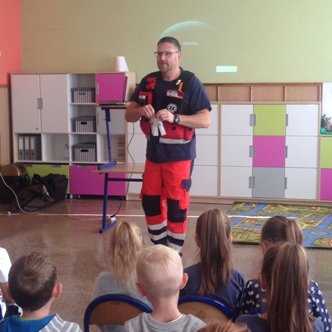 07.10.2019roku w Molnej odbyło się spotkanie z Panem Marcinem Małek – ratownikiem medycznym, który zapoznał dzieci z wykonywanym przez siebie zawodem. Uczniom zostały przekazane informacje na temat prawidłowego zachowania się podczas nagłych wypadków np.; omdlenia, krwotoku z nosa oraz braku tętna. Dzieci dowiedziały się również jakie informacje należy przekazać podczas wykonania telefonu na numery alarmowe. Bardzo serdecznie dziękujemy Panu Marcinowi za przyjęte zaproszenie i ciekawe zajęcia.