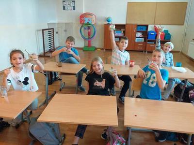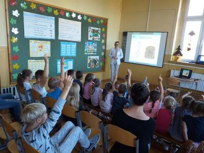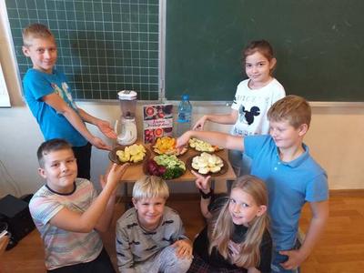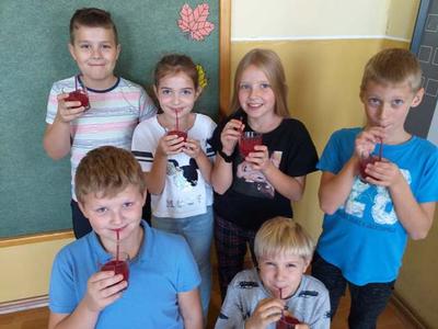 24 października obchodziliśmy Światowy Dzień Walki z Otyłością. Uczniowie wysłuchali rad i wskazówek na temat zdrowego żywienia zawartych w prezentacji przedstawionej przez zaproszonego gościa, Martynę Lampa, dietetyk z Centrum Dietetycznego Natur House w Lublińcu. Świadome korzyści spożywania owoców i warzyw, dzieci samodzielnie przygotowały odżywcze, kolorowe smoothie. Po spożyciu dietetycznych, energetycznych koktajli, uczniowie wzięli udział w konkurencjach sportowych na świeżym powietrzu. W związku z tematyką realizowaną na zajęciach, uczniowie próbowali również naturalnego antybiotyku – czosnku, w postaci tostów z masłem i czosnkiem. Finałem tygodnia promującego ruch i zdrową dietę, uczniowie wzięli udział w wyjeździe na basen do Olesna. Dieta i ruch, najlepszym sposobem na walkę z otyłością!