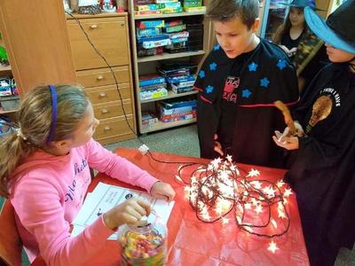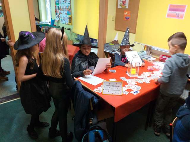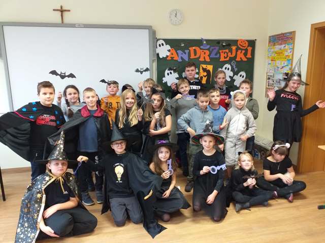 Uczniowie w przebraniach wróżek, czarodziejów i kotów spędzili andrzejkowy dzień na wspaniałej zabawie pełnej wróżb, przepowiedni i uśmiechu. Świetlica w prawdziwą salę wróżb, zachęcała uczniów do poznania rąbka tajemnicy odnośnie swojej przyszłości. Były wróżby z kartami, kubeczkami, butami, numerologia oraz czytanie z atramentu. Nie zabrakło również wróżby z ciasteczkami. Wróżby, choć przeprowadzone profesjonalnie, były oczywiście tylko zabawą z przymróżeniem oka. Finałem naszego andrzejkowego dnia były wspólne zabawy oraz ostatkowe tańce.