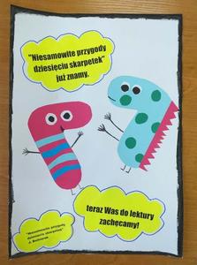 W ramach realizowanych zadań wykonaliśmy ćwiczenia na kartach pracy w specjalnie przygotowanych lekturnikach. Opisywaliśmy głównych i drugoplanowych bohaterów książki, ich przygody, morał wyciągany z każdego rozdziału, pisaliśmy streszczenie, ilustrowaliśmy. Wykonaliśmy zakładki do Publicznej Biblioteki w Glinicy zachęcające do przeczytania wybranej przez nas lektury, z hasłem “Czytaj z nami – Skarpetkami”. Zaprosiliśmy panią bibliotekarkę i poprosiliśmy o przeczytanie rozdziału książki. Wykonaliśmy i powiesiliśmy w ogólnodostępnym miejscu w szkole plakat zachęcający do przeczytania lekturu z hasłem “<Przygody dziesięciu skarpetek> już znamy, teraz Was do lektury zachęcamy!”. Zorganizowaliśmy również kącik czytelniczy w naszej klasie, gdzie umieściliśmy plakat projektu oraz wykonane przez nas z plasteliny Czytusie (Czytuś to postać - bohater projektu “Czytam z klasą”, zachęcający dzieci do czytania książek).