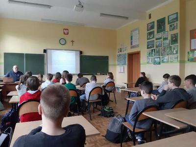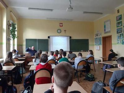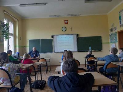 W dniu 11.02.2020 odbyły się w klasach Va, Vb, VIa i VIb zajęcia warsztatowe „Jestem bezpieczny w Internecie”. Zajęcia warsztatowe prowadził psychoterapeuta pan Dariusz Pietrek z Chorzowa. Podczas warsztatów uczniowie rozmawiali o uzależnieniach behawioralnych, o zasadach bezpieczeństwa w Internecie. Uczniowie obliczali swój tygodniowy czas jaki spędzają w sieci oraz odpowiadali na pytania związane z bezpieczeństwem w sieci. Reagowali poprawnie na historyjkę i sytuację głównego bohatera filmu i wiedzieli gdzie należy udać się o pomoc w sytuacji zagrożenia. Warsztaty były organizowane w ramach obchodów Dnia bezpiecznego Internetu.