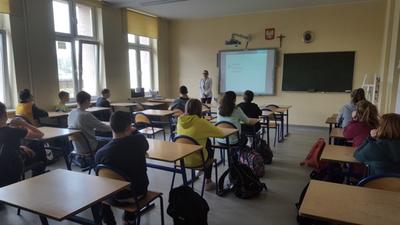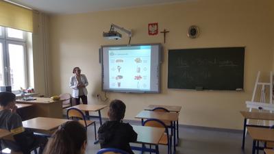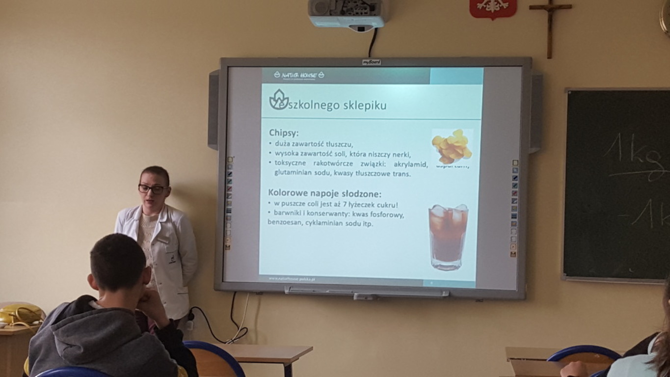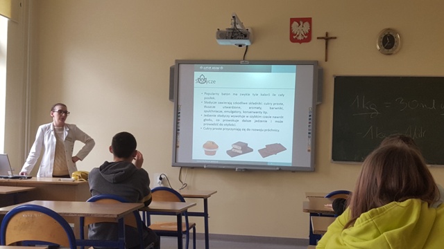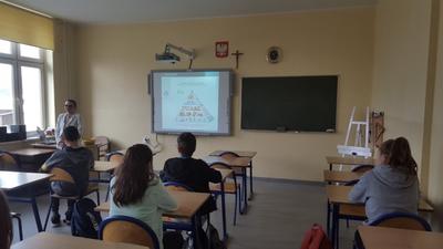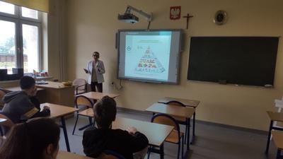 28.02.2020r. uczniowie klasy VII mieli okazję uczestniczyć w zajęciach prowadzonych przez panią dietetyk Martynę Lampa z Centrum Dietetycznego Natur House z Lublińca. Na początku pani opowiedziała uczniom na czym dokładnie polega zawód dietetyka, w jakich miejscach może podjąć pracę. Następnie wysłuchaliśmy prelekcji dotyczącej prawidłowego odżywiania się oraz zdrowego stylu życia. Na podstawie prezentacji multimedialnej pani przedstawiła najnowszy model piramidy zdrowego żywienia i stylu życia dzieci i młodzieży , mówiła jak ważne jest zjadanie surowych warzyw i owoców, wypijanie dużej ilości wody, aktywność fizyczna oraz odpowiednia ilość snu. Pani zwróciła też uwagę na regularne zjadanie posiłków oraz powiedziała jak istotne jest śniadanie, które ma wpływ na nasze funkcjonowanie przez cały dzień oraz nawet na wyniki w nauce. Były to bardzo cenne wskazówki, które postaramy się zastosować, aby żyć zdrowo i aktywnie!