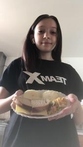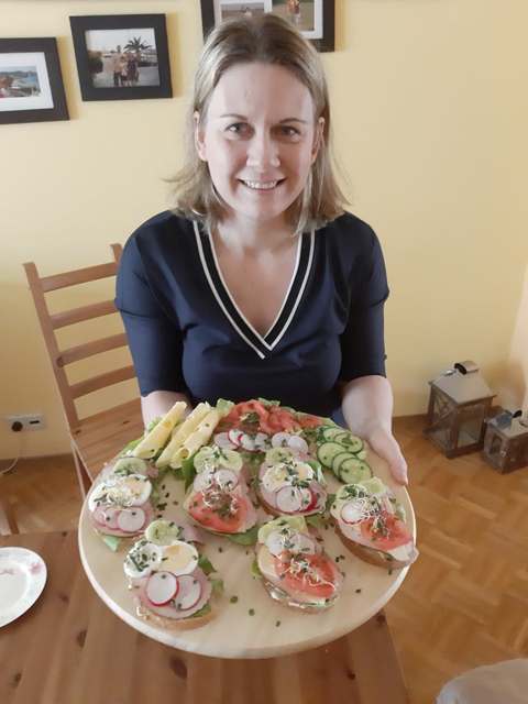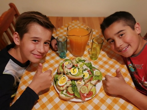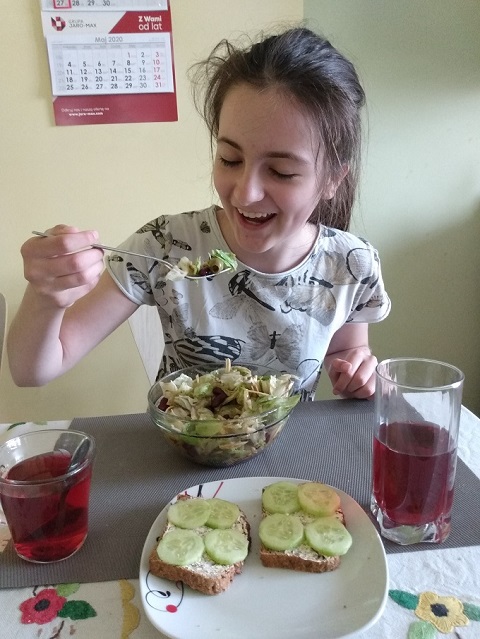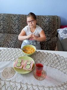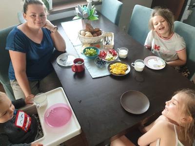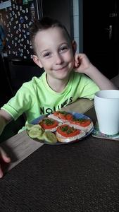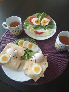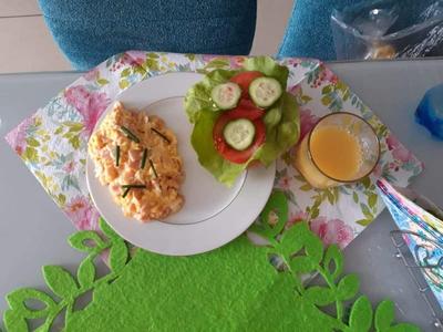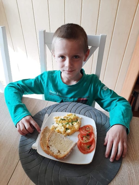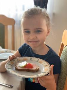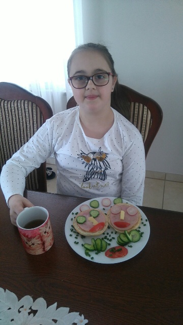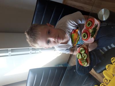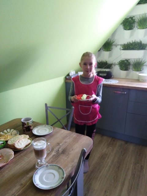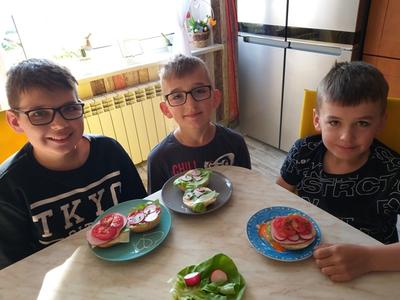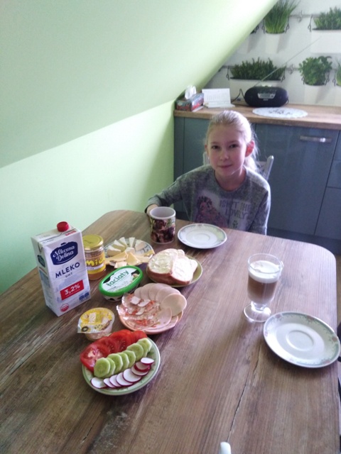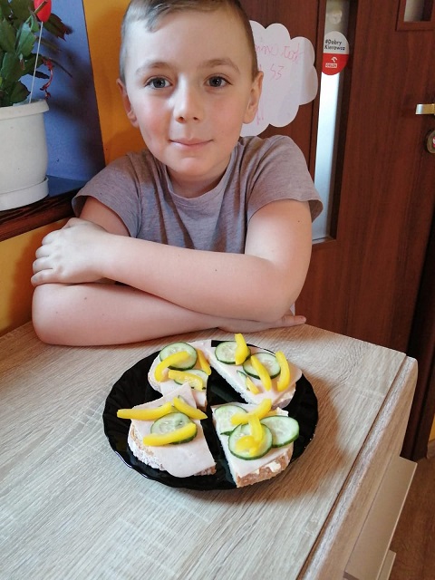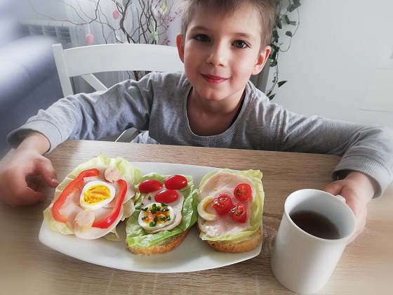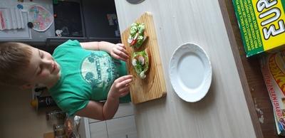 v Zrób śniadanie dla siebie i wybranej osoby z rodziny - mogą to być kanapki, pasty, serki, jajecznica, omlety, kiełbaski – pełna dowolność!!! niech to będzie takie śniadanie jakie lubisz jeść i umiesz zrobić.