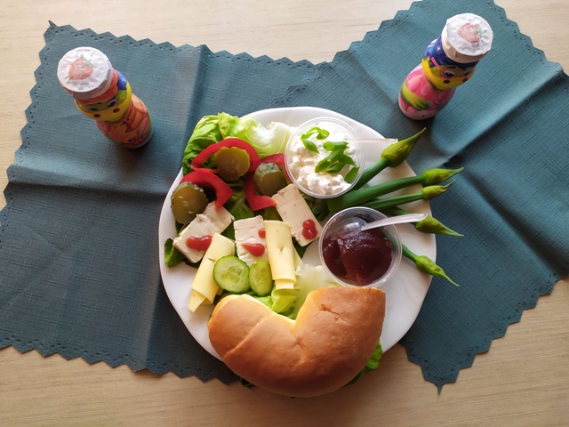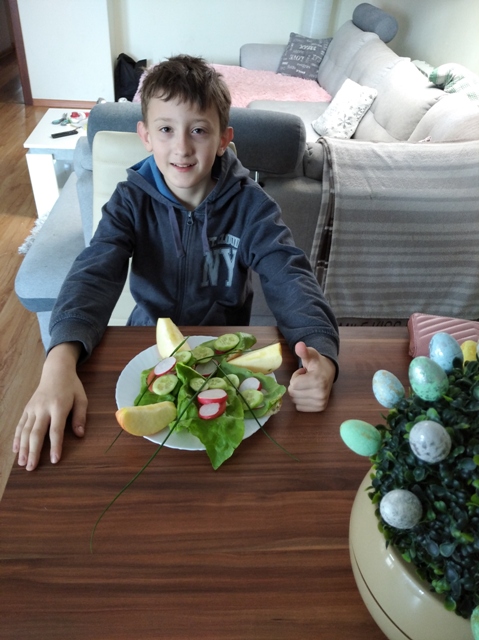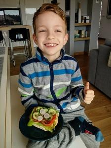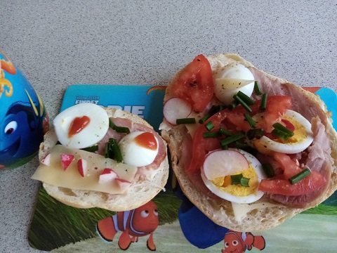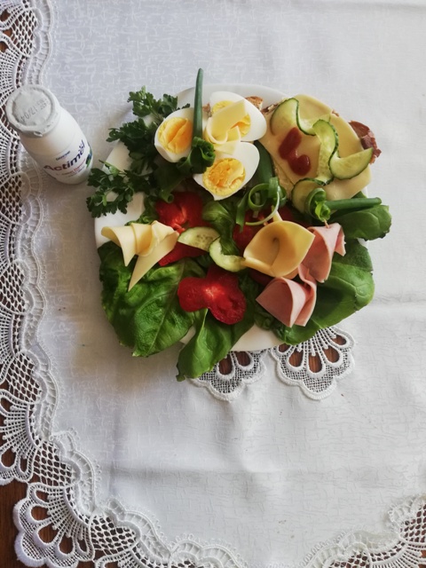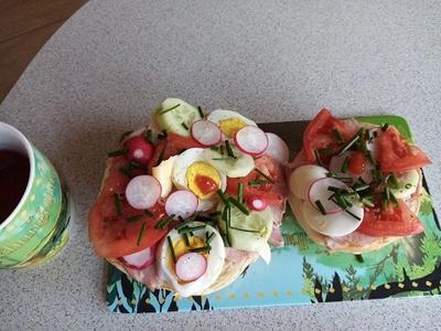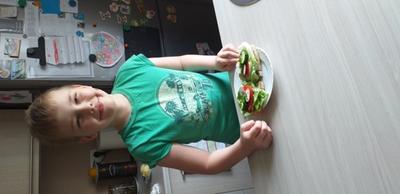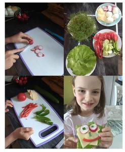 v Użyj produktów które masz w lodówce, spróbuj dodać zdrowe, pełne witamin produkty (sałata, rzodkiewka, pomidor, ogórek) – jeśli lubisz,