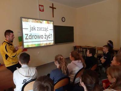 Jeszcze gdy uczyliśmy się w sposób tradycyjny uczniowie uczestniczyli w spotkaniu inaugurującym, którego tematem przewodnim był temat „ Jak zacząć zdrowo żyć”. Pan Michał Hruzik przedstawił prezentację w której szczegółowo omówił co robić, by zdrowo się odżywiać oraz jak podejść do aktywności fizycznej, ile czasu jej poświęcić i co robić by czerpać z niej przyjemność. Spotkanie zakończyło się krótkim quizem sprawdzającym wiedzę uczniów.