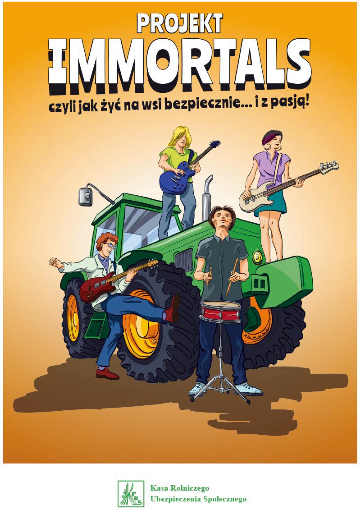 4. Broszura pt. „Projekt Immortals, czyli jak żyć na wsi bezpiecznie …i z pasją!” – to komiks dla młodzieży, który opowiada o grupie mieszkających na wsi przyjaciół, którzy razem z czytelnikiem dowiadują się, że wielu nieszczęśliwych zdarzeń można uniknąć: