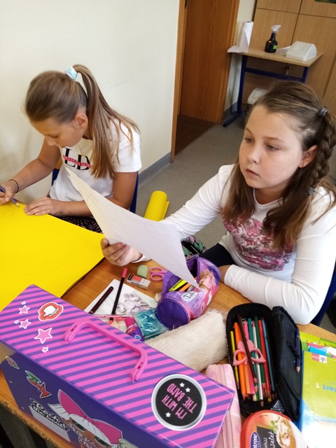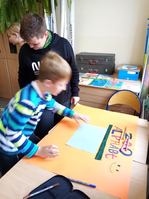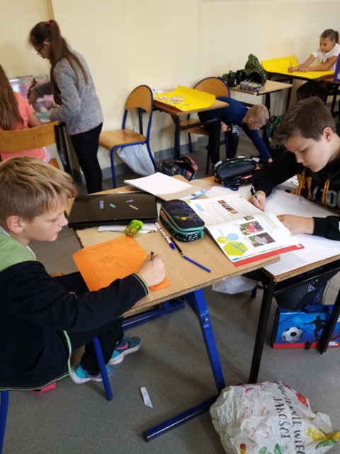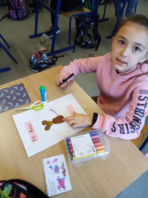 Uczniowie klas trzecich oraz klasy czwartej, jeszcze podczas wspólnej nauki w sali szkolnej, pracowali na lekcjach języka mniejszości nad projektami językowymi: Blättertiere oraz Alphabet. Praca zespołowa dała uczniom możliwość dzielenia się własnymi pomysłami, rozwijała ich kompetencje społeczne, ale także uświadomiła wszystkim, że nauka języka obcego wcale nie musi być nudna…