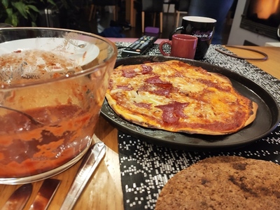 Zrób pizzę wg swojego uznania (na kruchym lub grubym cieście- tak jak lubisz), skomponuj składniki i dodaj swoje ulubione dodatki. Może każdy kawałek inny? Jedna duża pizza to tak jak rodzina, a każdy kawałek inny, jak różni członkowie są w rodzinie. Mogłoby się wydawać że nie pasują do siebie, ale jak są razem to jest super… J i dobrze smakują.