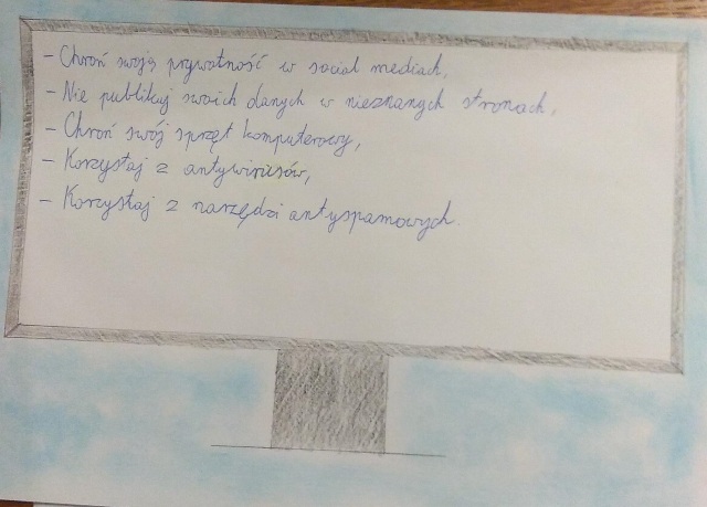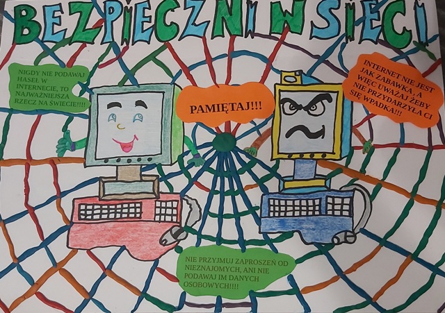 W ramach obchodów Dnia Bezpiecznego Internetu został ogłoszony konkurs plastyczny na najciekawszy plakat pt.: „Bezpieczni w sieci”. Celem naszego konkursu jest: pobudzanie aktywności twórczej dzieci, propagowanie zasad bezpiecznego korzystania z Internetu, zachęcanie do inicjowania nowych, ciekawych pomysłów a także wzmocnienie wśród uczniów wiary we własne umiejętności i zdolności.