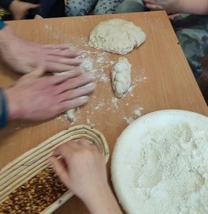 W czasie wolnym uczniowie wykonali, według podanego im przepisu, masę solną i ulepili z niej chleb oraz bułki.