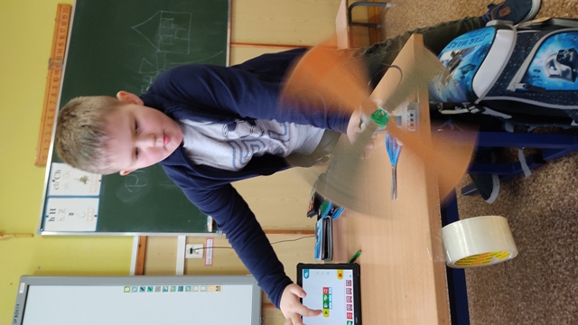 Kolejno, znów w drodze losowania, uczniowie zostali podzieleni na grupy. Każda z nich otrzymała konkretne zadanie: grupa pierwsza budowała podstawę młyna z klocków konstrukcyjnych, grupa druga budowała oraz programowała wiatrak, grupa trzecia – projektowała makietę wsi, czwarta – tworzyła z klocków literki składające się na tytuł drugiego etapu oraz budowała i programowała traktor, którego zadaniem było zawieźć zboże do młyna.