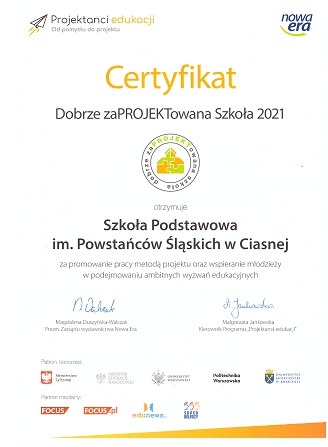 W styczniu 2021r. nasza szkoła została laureatem XI edycji ogólnopolskiego konkursu na projekt edukacyjny „Projektanci edukacji„.