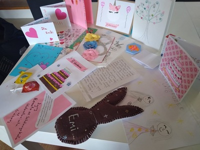 Emilka jest dzielną wojowniczką a jej przeciwnikiem jest guz pnia mózgu. Dziewczynka 2 maja obchodzi swoje 8 urodzinki. Z tej właśnie okazji postanowiliśmy sprawić jej niespodziankę i wysłać małą paczuszkę od wolontariuszy. Nasi uczniowie nie tylko zrobili piękne kartki z życzeniami powrotu do zdrowia, ale także przekazali Emilce drobne upominki.