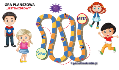W tym tygodniu w ramach gier planszowych proponuję dwie gry, do których stworzenia inspiracją była aktualna sytuacja epidemiologiczna. Granie w poniższe gry może być okazją do kształtowania nawyków higienicznych oraz ruchowych. Myśląc o dzieciach młodszych, którzy przebywają w domu z rodzicami, gra może okazać się świetną rozrywką rodzinną.