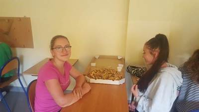 Dnia 11.06.2021r. uczniowie klasy VIII wraz z wychowawcą zorganizowali wieczór filmowy w szkole. Mieliśmy okazję zobaczyć komedię pod tytułem: „ Rodzina od zaraz”. Film opowiadał o tym, jak pewne bezdzietne małżeństwo musiało szybko nauczyć się nawiązywać kontakt z dziećmi, aby stać się prawdziwą rodziną. Nasz kolega Marcel wybrał film i przygotował sprzęt. W czasie wieczorku mieliśmy przerwę na zjedzenie pysznej pizzy. Zebraniem zamówień na ową pizzę zajął się Mateusz K. Wspólnie spędzony czerwcowy wieczór był bardzo miły i przyjemny! Dziękujemy!