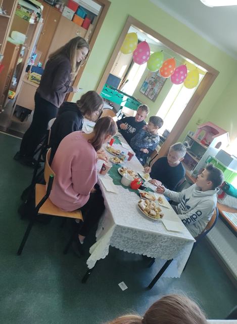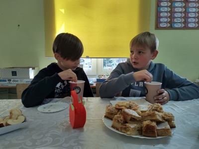 Oprócz tego, że świetlica w Ciasnej w ten dzień zamieniła się w kawiarnie, to każda z klas w Molnej również. Gościły tam cudowne zapachy kawy zbożowej oraz szarlotki. Uczniowie spędzili wspólnie miłe chwile na pogaduchach przy kawie i cieście. Panowała wspaniała atmosfera, która sprzyjała budowaniu pozytywnych relacji oraz zacieśnieniu więzi w grupie.