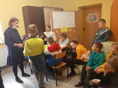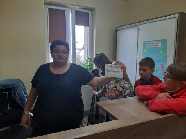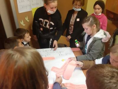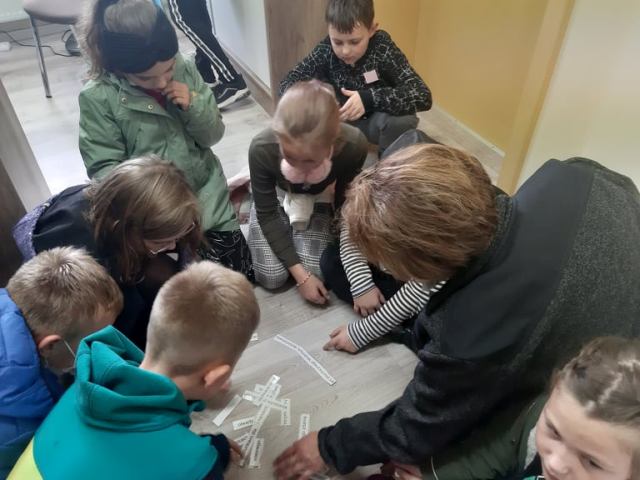 - Asertywność – dzieci po odnalezieniu stacji w sekretariacie szkoły, musiały ułożyć słowną rozsypankę, dzięki czemu dowiedzieli się czym jest asertywność, próbowali w sposób asertywny rozwiązać różne sytuacje społeczne, które wylosowali.