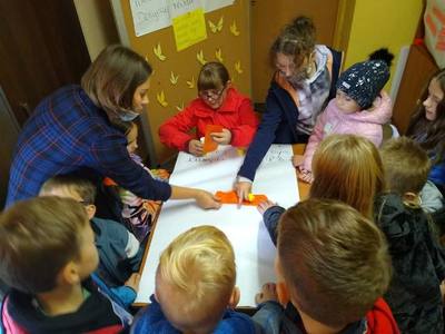 - Pedagog szkolny - pedagog Kasia Czakiert wyjaśniła na swojej stacji omawiała elementy programu „Bądź kumplem – nie dokuczaj” a także omówiła podstawowe zagadnienia dotyczące dokuczania i jego wpływu na relacje z rówieśnikami. Uczniowie wspólnie tworzyli „Kodeks dobrego kumpla”,