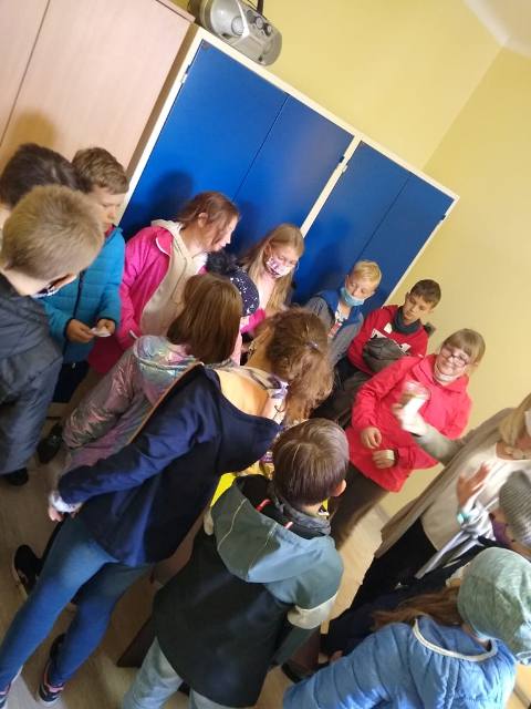 - Piekarnia – baza komunikacji, uczniowie mieli za zadanie kupić pączka bez użycia słowa pączek. Pani ekspedientka, udawała, że nie rozumie o co chodzi, kiedy wskazywali palcem, więc zadanie okazało się nie tylko wymagające, ale i zabawne.
