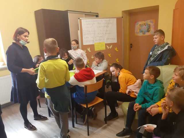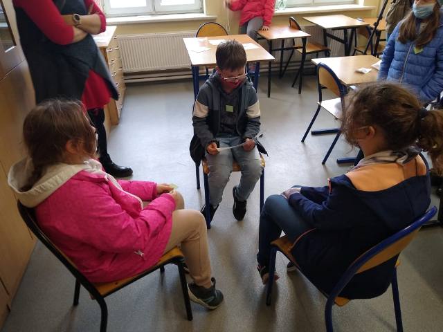- Mediacja – stację prowadziła pedagog Magda Gałuszka, uczniowie przypomnieli sobie znaczenie słowa mediacja, poznali podstawowe zasady mediacji i odgrywali scenkę mediacyjną.