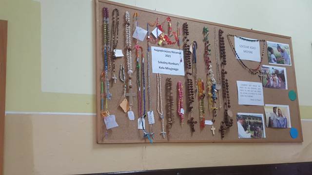 Uczniowie SP Ciasna wzięli udział w konkursie organizowanym przez Szkolne Koło Misyjne: „ Najpiękniejszy Różaniec 2021”. Wykonane prace były bardzo pomysłowe i różnorodne. Różańce można było podziwiać na gazetce mieszczącej się na szkolnym korytarzu. Wyniki konkursu: