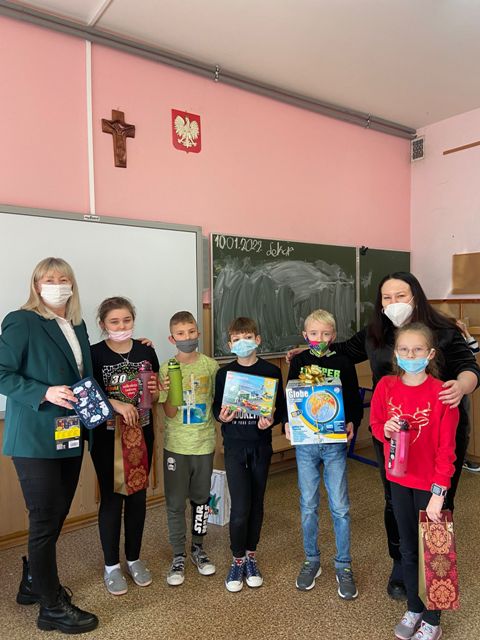 Dzieciom gratulujemy i zapraszamy do udziału w innych konkursach językowych. Dziękujemy pani wicedyrektor Małgorzacie Gzyl za obecność podczas wręczania upominków uczestnikom konkursu.
