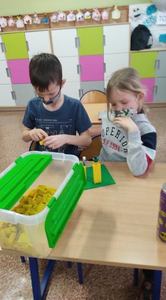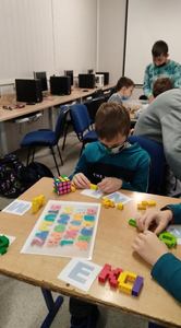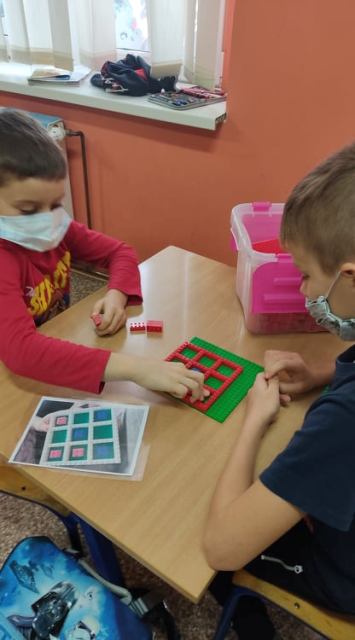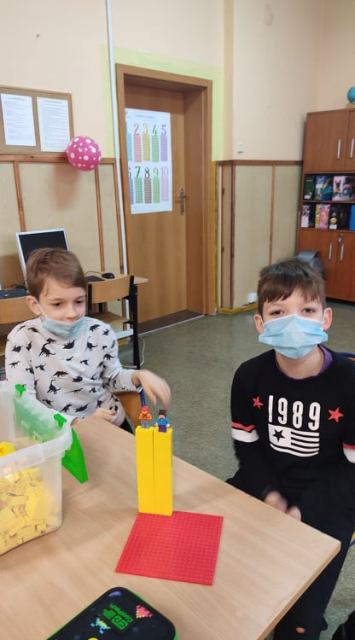 Podczas zajęć połączyliśmy zabawę z nauką liczenia, rozpoznawania cyfr, a także z wspomaganiem motoryki małej i logicznego myślenia. Przy użyciu ludzików Lego stworzyliśmy mini grę ścigankę, która dostarczyła uczniom wielu pozytywnych emocji oraz przygotowaliśmy plansze do gry w "Kółko - krzyżyk". Tego dnia dzieci miały również okazję do zaprojektowania swoich własnych budowli z klocków Lego.