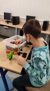 Uczestnicy Szkolnego Koła Informatycznego, pozdas lekcji online, poznali program Lego Digital Desinger, który pozwolił im na stworzenie komputerowych modeli z klocków Lego.