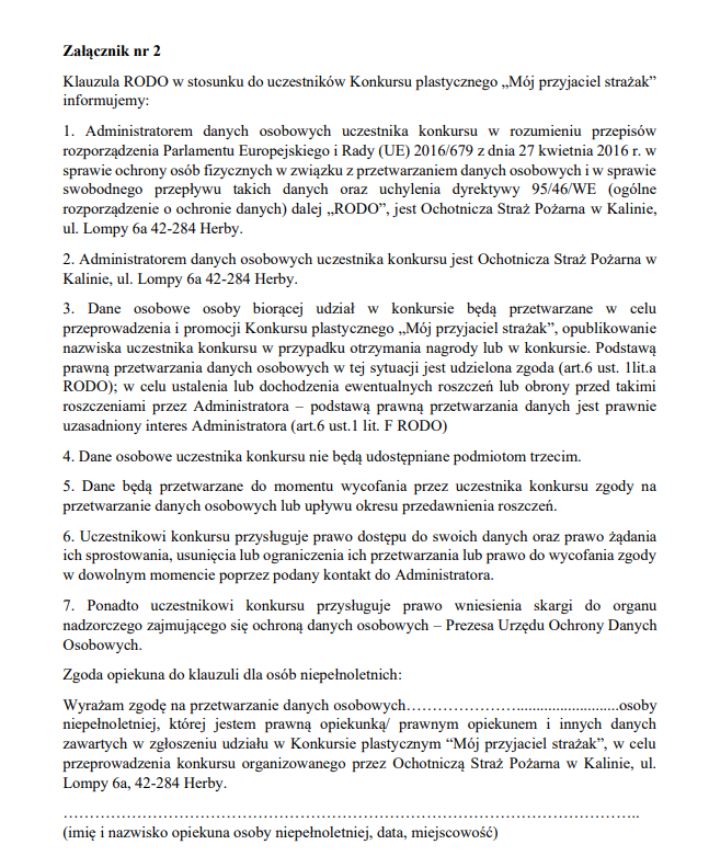 Organizatorem konkursu plastycznego jest Ochotnicza Straż Pożarna w Kalinie.