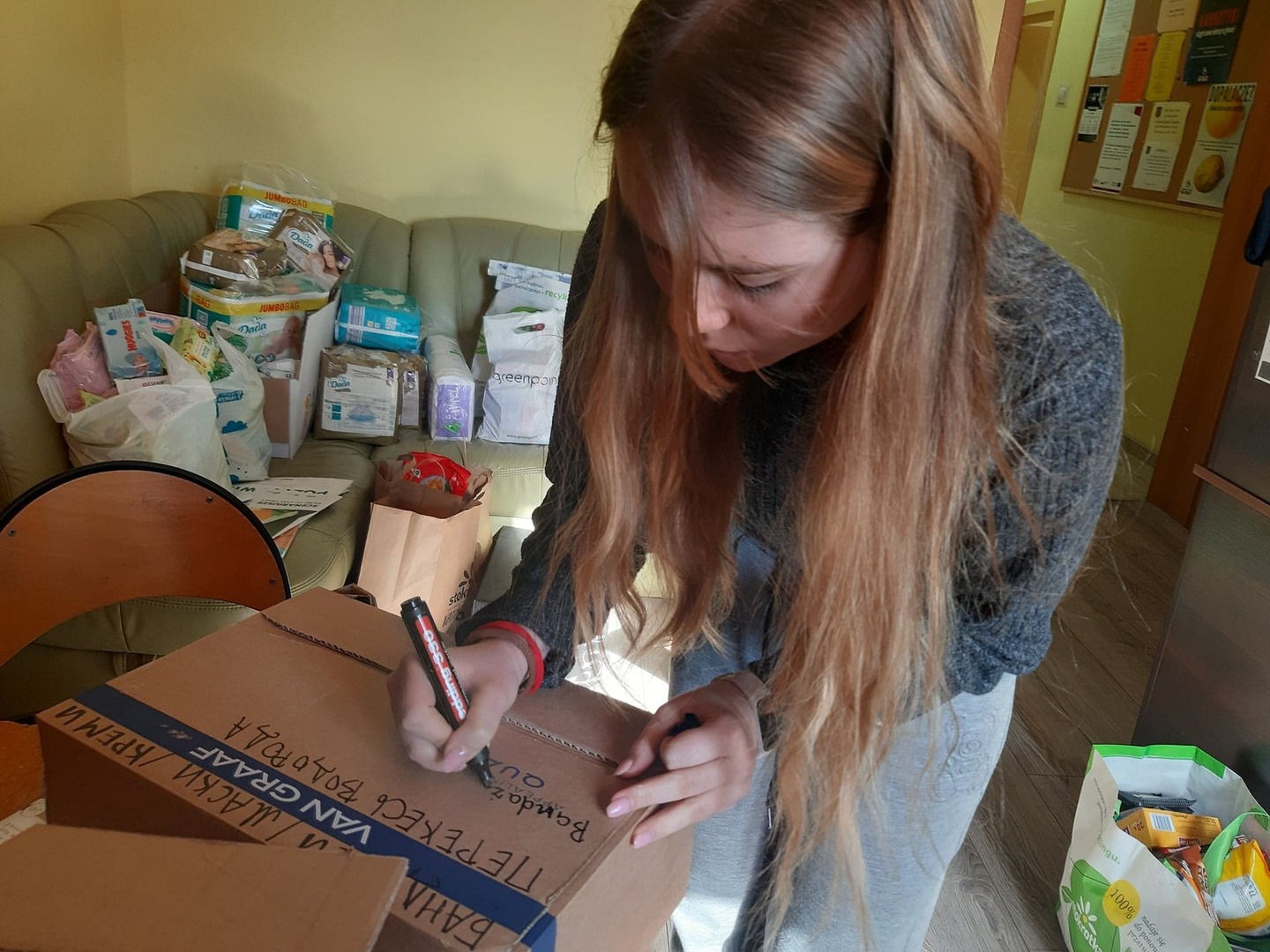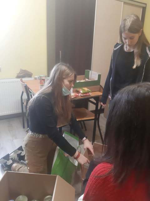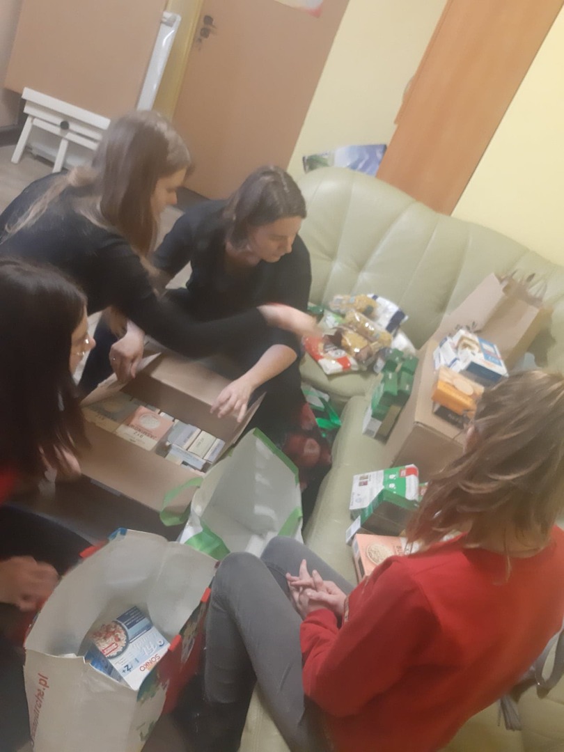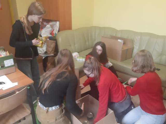 w zbiórkę.Uczniowie klasy 8a pomagali segregować, pakować, nosić oraz opisywać w języku polskim i ukraińskim paczki z darami. Bardzo dziękujemy p. Katarzynie Czakiert za przewożenie paczek do Częstochowy oraz pomoc w organizowanej zbiórce.