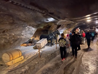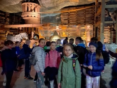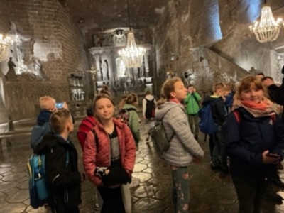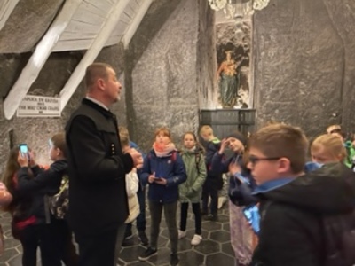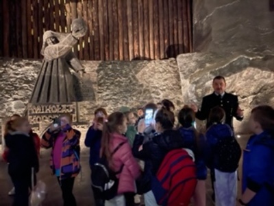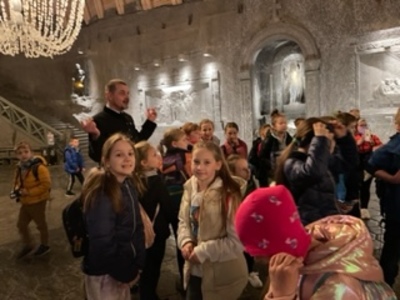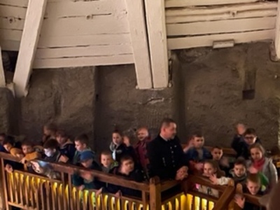 26.04.2022 r. uczniowie trzecich klas Szkoły Filialnej w Molnej wraz z wychowawcami pojechali na wycieczkę szkolną do kopalni soli w Wieliczce. Po kopalni oprowadzał dzieci pan przewodnik, który w ciekawy sposób mówił o jej powstaniu oraz opowiadał związane z nią legendy. Najbardziej znaną była legenda o św. Kindze, która w ślubnym posagu podarowała Polsce sól.W czasie zwiedzania dzieci zobaczyły ogromną drewnianą maszynę górniczą oraz jezioro solankowe.Podziwiały pomnikiwielkich Polaków tj. króla Kazimierza Wielkiego, Mikołaja Kopernika oraz Józefa Piłsudskiego.Największą atrakcją była kaplica św. Kingi, w której podziwiały wspaniałe płaskorzeźby, żyrandole z kryształów soli oraz przepiękną rzeźbę Jana Pawła II wykonaną także z bryły solnej. Dzieci wędrowały górniczymi chodnikami, które miały ściany, podłogi i sufity całe z soli. Widziały liczne groty, w których ukryte były inne tajemnice np. Skarbnik, czyli duch mieszkający w kopalni, krasnale oraz głowa ogromnego smoka, który pożerał sól. W czasie wycieczki atrakcji nie brakowało. Na koniec zwiedzania dzieci kupiły dla siebie i swoich najbliższych liczne pamiątki, które z pewnością przypomną imwrażenia z wycieczki. W kopalnianej restauracji zjadły także pyszny obiad, który dał im siły na powrót do domu.