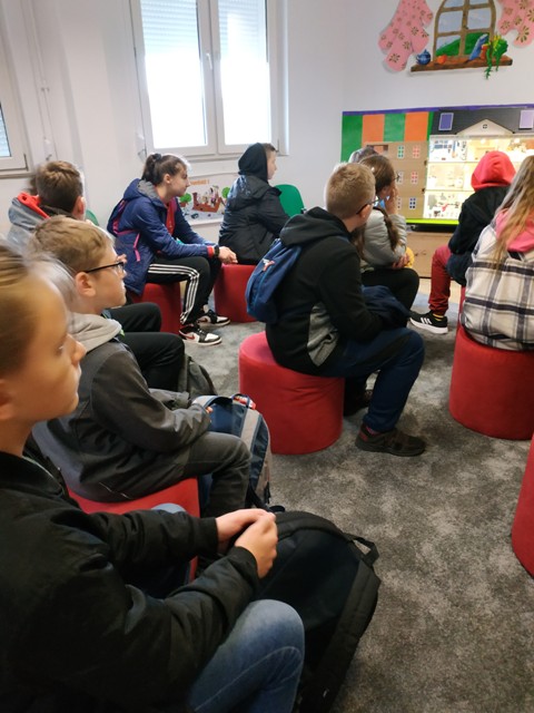 W dniu 25 kwietnia 2022 r. uczniowie klasy 7 b pojechali na wycieczkę do Lublińca, gdzie mieli okazję obejrzeć seans filmowy pt. ,,Za duży na bajki’’. Przekaz filmu miał charakter edukacyjny, a jego odbiór przysporzył młodzieży licznych wzruszeń, ale także i uśmiechu. Film opowiadał o sile więzi międzypokoleniowych i poruszał tematy niezwykle aktualne w rzeczywistości postpandemicznej, takie jak: relacje, przyjaźń, emocje, samoakceptacja oraz bezpieczeństwo w Internecie. Uczniowie wyrazili pozytywne opinie na temat obejrzanego seansu, po zakończeniu którego przeszli wraz z opiekunkami do Komendy Powiatowej PSP w Lublińcu. Tutaj młodzież zwiedziła ,,Salę dydaktyczną Ognik” i wzięła udział w niezwykle ciekawych warsztatach, mających na celu wdrażanie prawidłowych odruchów i reakcji w sytuacjach zagrożenia. Uczniowie z zainteresowaniem śledzili przebieg symulacji na poszczególnych stanowiskach i aktywnie uczestniczyli w zajęciach. Wspólny wyjazd zakończył się wizytą w pizzeriiJ
